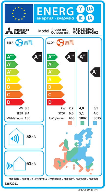 • Преобразуване на ел. енергия: охл./отопл. SEER 8.9 / SCOP 4.8 w/w