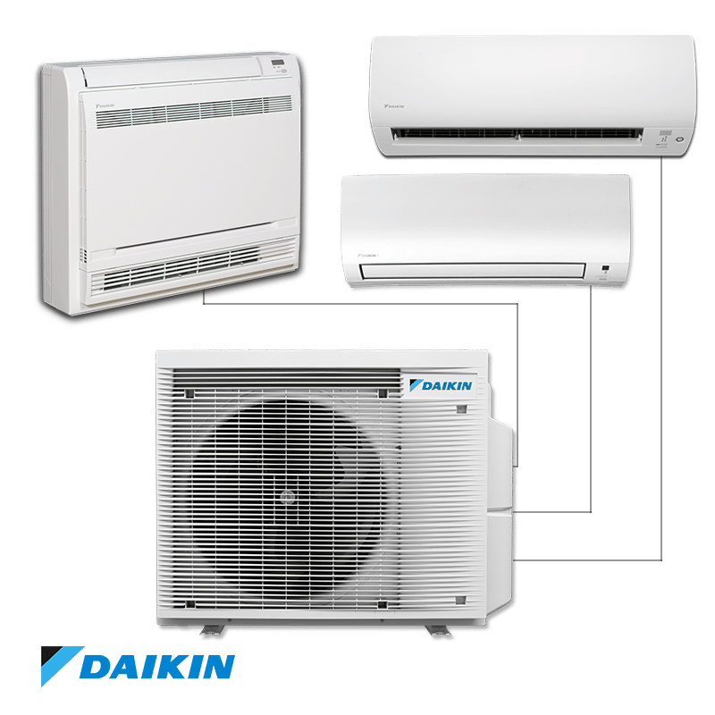 Система Мулти от серията мултисплит системи на Daikin позволява включване на до 5 вътрешни тела само с едно външно тяло, като по този начин се намалява необходимото място и разходите за монтаж. Всички вътрешни тела могат да се контролират поотделно. При извършване на монтаж не е необходимо всички тела да бъдат монтирани едновременно т.е. винаги могат да се добавят още за достигане на максималния капацитет.